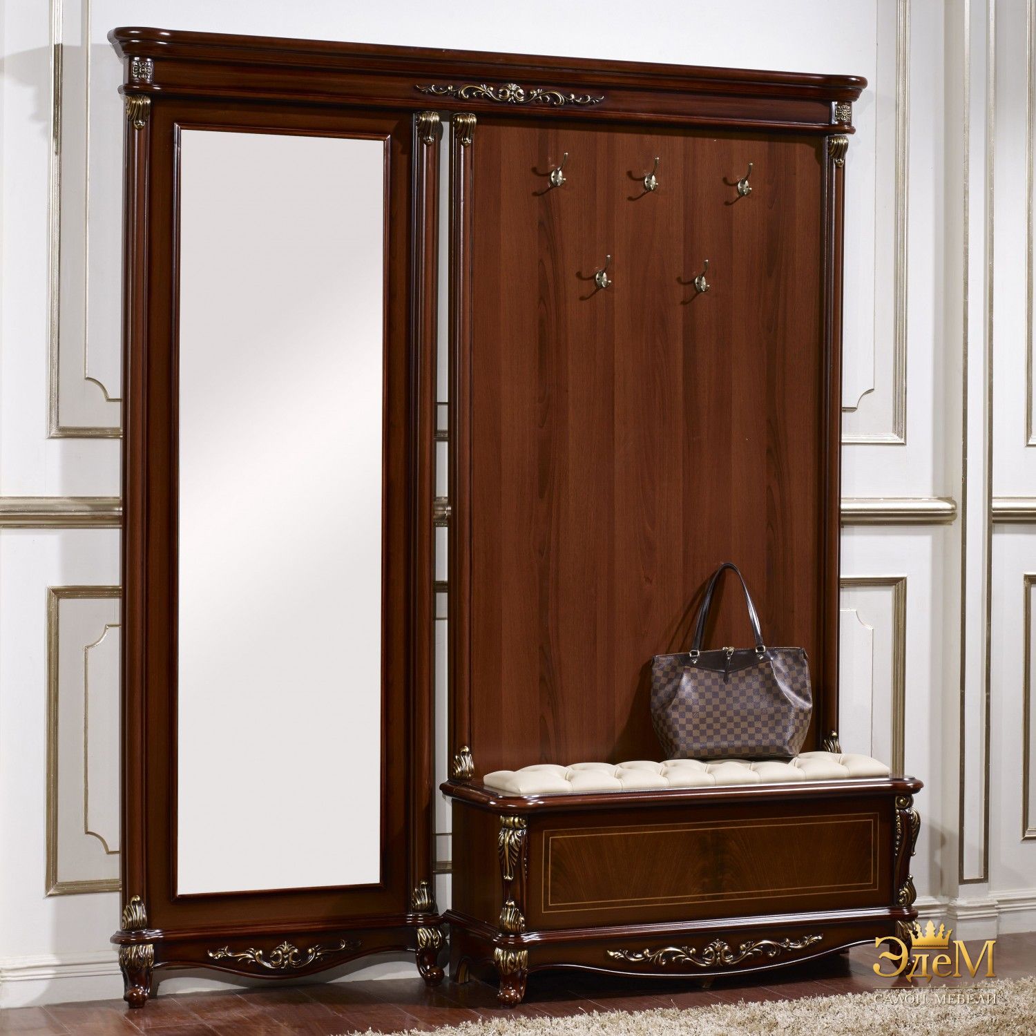 Главная / Универсальный каталог / Столы и стулья в Махачкале / Afina орех с золотом Прихожая с сидением, орех, 1965х420х2200